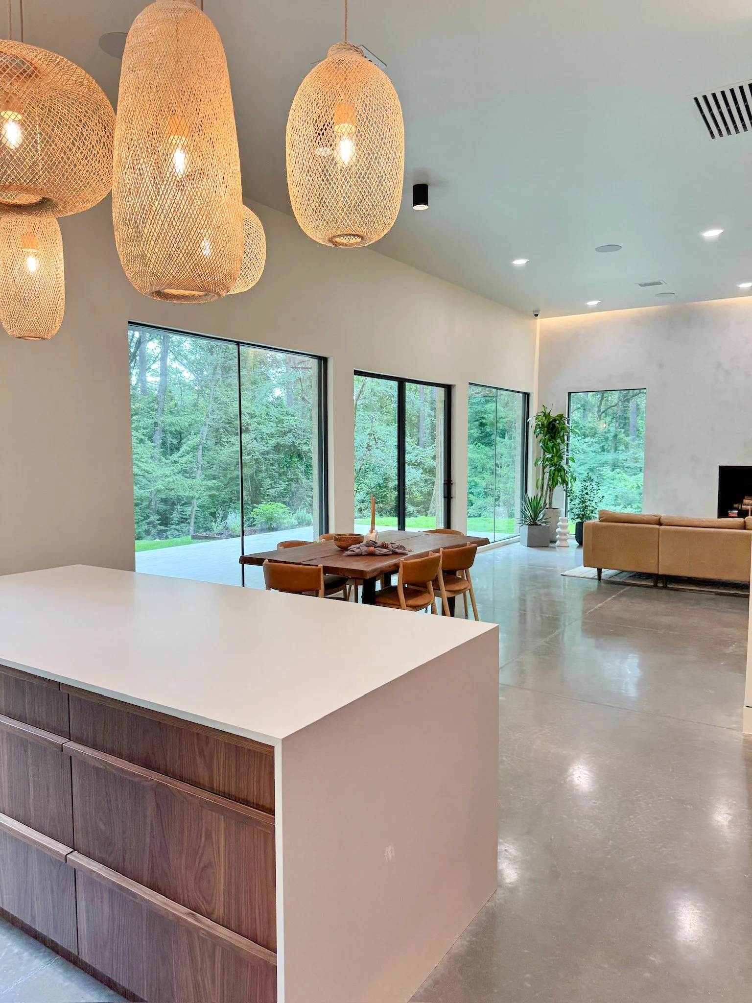 The Modern Tulum is a 2,400 sq ft split-level custom home that blends modern minimalism with the laid-back elegance of Tulum, Mexico. With 3 bedrooms, 2.5 bathrooms, and a dedicated home office, the home is thoughtfully designed to support both relaxation and functionality. Zoned living spaces flow naturally across two levels, enhanced by abundant natural light, organic textures, and high-end finishes. Every detail was intentionally chosen to create a serene, sanctuary-like atmosphere—offering a fresh, soulful take on modern living in East Texas.